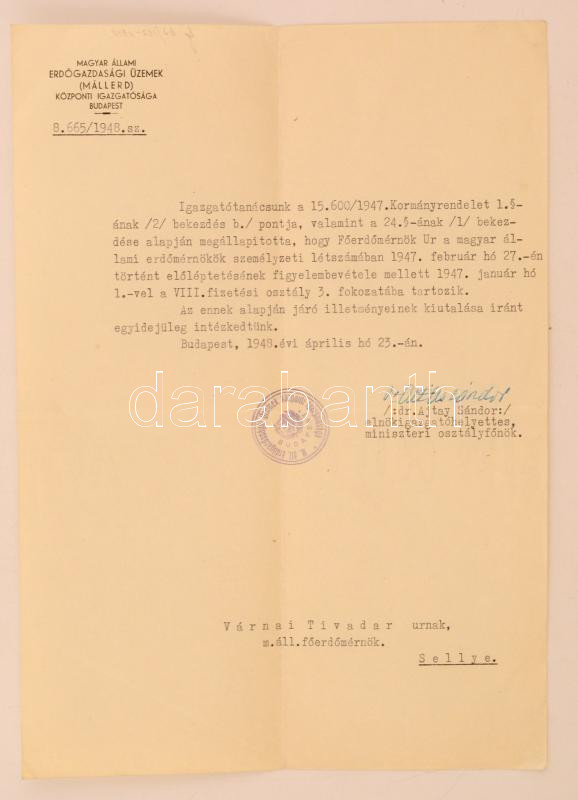 1948 Bp., A Magyar Állami Erdőgazdasági Üzemek Központi Igazgatóságána... https://www.darabanth.com/de/277-Fernauktion/277.0/Andere-Sammelgebiete/Dokument~16/1948-Bp-A-Magyar-Allami-Erdogazdasagi-Uzemek-Kozponti-Igazgatosaganak-fejleces-levelpap~II1420588