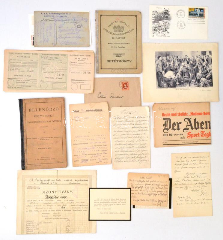 Beschreibung: 1900-1985 Vegyes nyomtatvány- és okmánytétel (részvények, levelek, bizonyítványok FDC-k, stb.) / mixed lot of old documents and printed materials