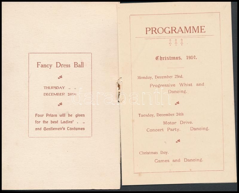 1912 Bournemouth Hydropathic karácsonyi és új évi bálok programja / Pr... https://www.darabanth.com/de/277-Fernauktion/277.0/Andere-Sammelgebiete/Drucksachen~28/1912-Bournemouth-Hydropathic-karacsonyi-es-uj-evi-balok-programja-Program-of-balls~II1420711
