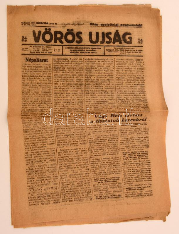 1919 a Vörös Újság 2. évf. 142. lapszáma, számos érdekes írással https://www.darabanth.com/de/277-Fernauktion/277.0/Andere-Sammelgebiete/Drucksachen~28/1919-a-Voros-Ujsag-2-evf-142-lapszama-szamos-erdekes-irassal~II1421779