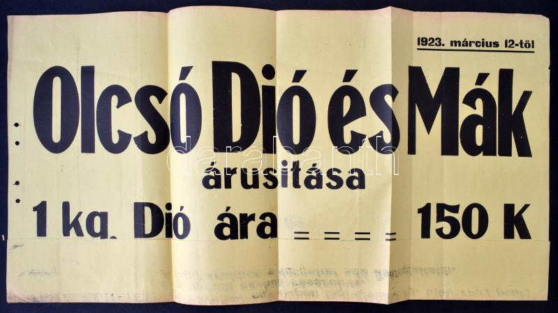 1923 Olcsó dió és mák, plakát, 42x66cm https://www.darabanth.com/de/277-Fernauktion/277.0/Andere-Sammelgebiete/Drucksachen~28/1923-Olcso-dio-es-mak-plakat-42x66cm~II1365855
