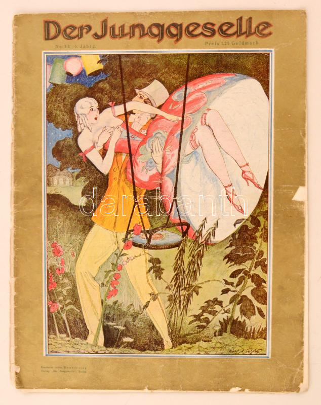 1925 Der Junggeselle, Nr.33/6 Jahrgang(33. szám, 6. évfolyam), erotiku... https://www.darabanth.com/de/277-Fernauktion/277.0/Andere-Sammelgebiete/Drucksachen~28/1925-Der-Junggeselle-Nr336-Jahrgang33-szam-6-evfolyam-erotikus-ujsag-24p~II1422971