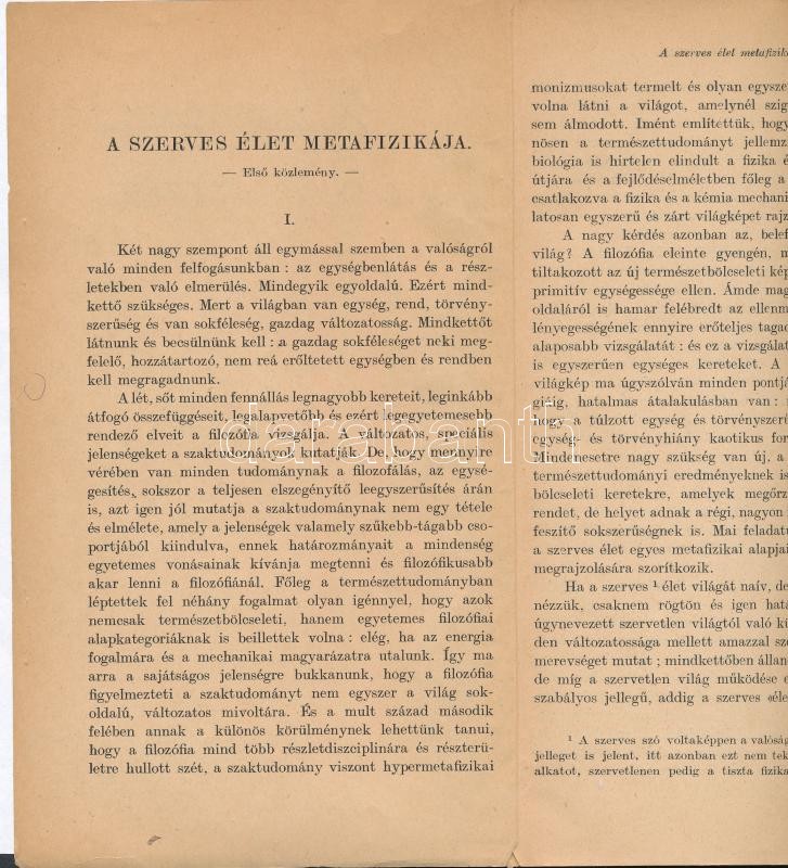 1929 Brandenstein Béla: A szerves élet metafizikája első és második közlemény. Különlenyomat a Budapesti Szemle, 1929, 57. évfolyam 620-621. számaiból. A két közlemény összekötötték. Az első lapon Brandenstein Béla általi dedikációval.