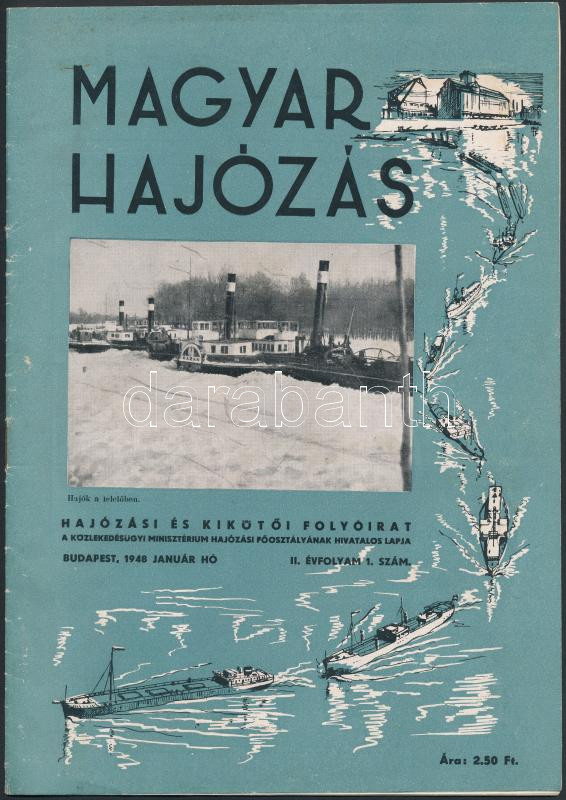 1948 A Magyar Hajózás II. évfolyamának 1.száma, 14p https://www.darabanth.com/de/277-Fernauktion/277.0/Andere-Sammelgebiete/Drucksachen~28/1948-A-Magyar-Hajozas-II-evfolyamanak-1szama-14p~II1420244