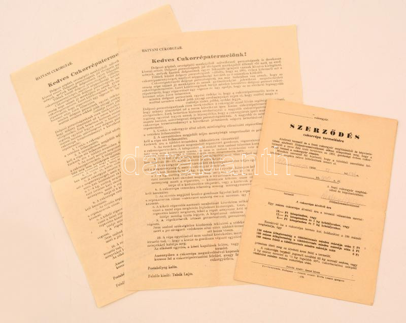 1950 Cukorrépa beszállítás feltételei és szerződés + Hatvani cukorgyár... https://www.darabanth.com/de/277-Fernauktion/277.0/Andere-Sammelgebiete/Drucksachen~28/1950-Cukorrepa-beszallitas-feltetelei-es-szerzodes-plus-Hatvani-cukorgyar-roplapja-sugar-be~II1418561