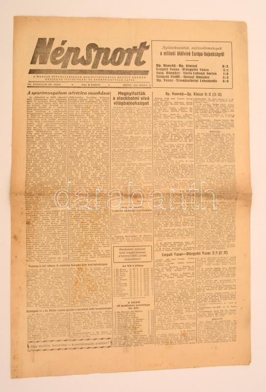 1951 A Népsport VII. évfolyamának 100. száma, benne a vívó világbajnok... https://www.darabanth.com/de/277-Fernauktion/277.0/Andere-Sammelgebiete/Drucksachen~28/1951-A-Nepsport-VII-evfolyamanak-100-szama-benne-a-vivo-vilagbajnoksagrol-es-BpHonved~II1422818