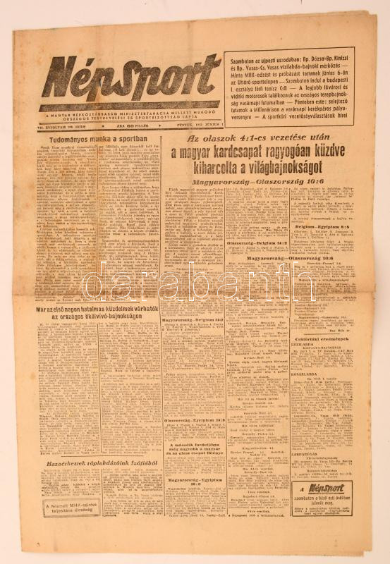 1951 A Népsport VII. évfolyamának 108. száma, benne a vívó világbajnok... https://www.darabanth.com/de/277-Fernauktion/277.0/Andere-Sammelgebiete/Drucksachen~28/1951-A-Nepsport-VII-evfolyamanak-108-szama-benne-a-vivo-vilagbajnoksagrol-es-a-magyar-v~II1422813