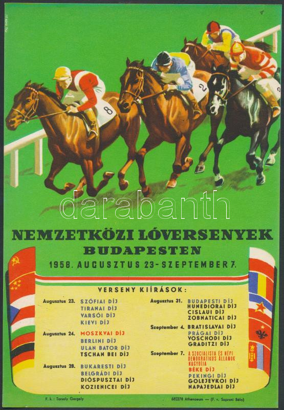 1958 Nemzetközi lóversenyek Budapesten, kisplakát, 24x16 cm https://www.darabanth.com/de/277-Fernauktion/277.0/Andere-Sammelgebiete/Drucksachen~28/1958-Nemzetkozi-loversenyek-Budapesten-kisplakat-24x16-cm~II1420300