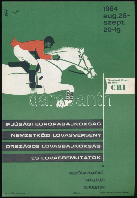 1964 Ifjúsági Európa bajnokság, nemzetközi lovasverseny. Kisplakát. 15... https://www.darabanth.com/de/277-Fernauktion/277.0/Andere-Sammelgebiete/Drucksachen~28/1964-Ifjusagi-Europa-bajnoksag-nemzetkozi-lovasverseny-Kisplakat-15x22-cm~II1425440