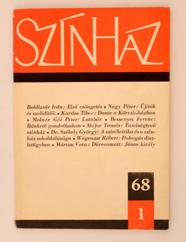 1968 Színház. Színházművészeti folyóirat. I.évfolyam, 1. szám. Lapkiad... https://www.darabanth.com/de/277-Fernauktion/277.0/Andere-Sammelgebiete/Drucksachen~28/1968-Szinhaz-Szinhazmuveszeti-folyoirat-Ievfolyam-1-szam-Lapkiado-Vallalat-Kiadoi~II1419972