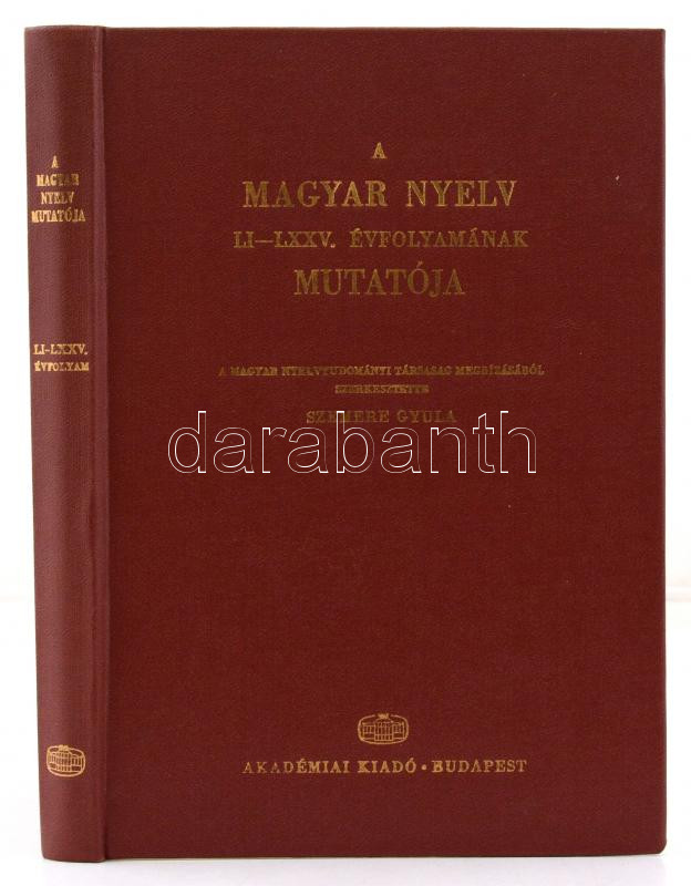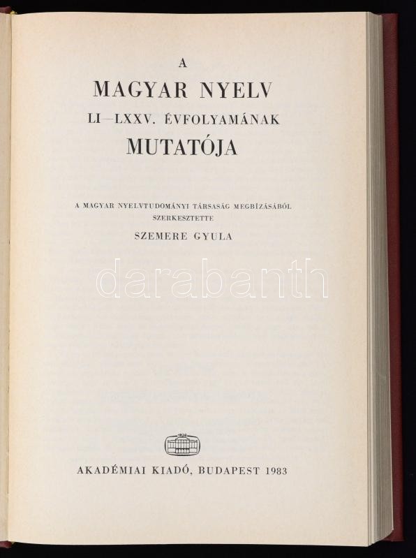 Szemere Gyula (szerk.): A magyar nyelv LI-LXXV. évfolyamának mutatója.... https://www.darabanth.com/de/277-Fernauktion/277.0/Andere-Sammelgebiete/Drucksachen~28/Szemere-Gyula-szerk-A-magyar-nyelv-LI-LXXV-evfolyamanak-mutatoja-Budapest-1983-Akademiai~II1399044