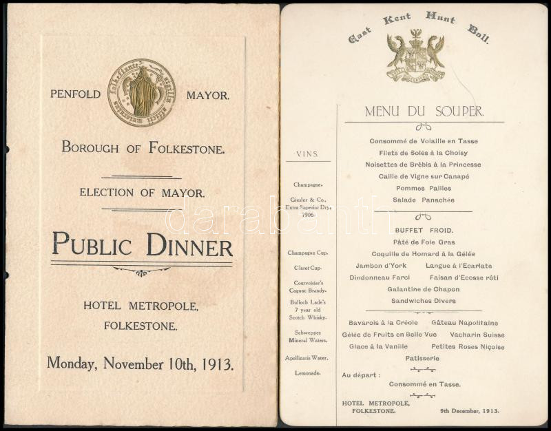cca 1900-1910 11 db menükártya, nagyrészt angol vacsorákra. Szép szece... https://www.darabanth.com/de/277-Fernauktion/277.0/Andere-Sammelgebiete/Drucksachen~28/cca-1900-1910-11-db-menukartya-nagyreszt-angol-vacsorakra-Szep-szecesszios-darabokkal-11-E~II1420695