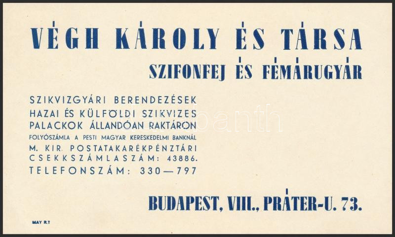cca 1925-1930 Végh Károly és Társa Szifonfej és Fémárugyárának szóróla... https://www.darabanth.com/de/277-Fernauktion/277.0/Andere-Sammelgebiete/Drucksachen~28/cca-1925-1930-Vegh-Karoly-es-Tarsa-Szifonfej-es-Femarugyaranak-szorolapja~II1418258