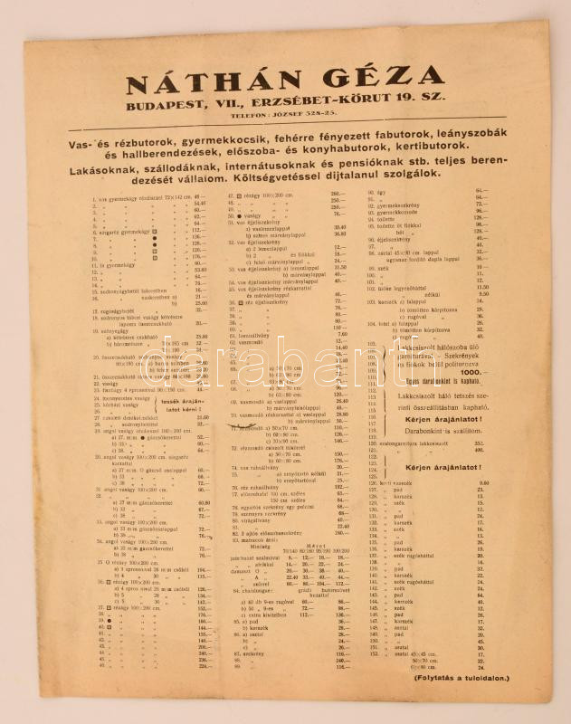 cca 1930 Bp.VII., Náthán Géza Vas- és rézbútorok, gyermekkocsik, stb. ... https://www.darabanth.com/de/277-Fernauktion/277.0/Andere-Sammelgebiete/Drucksachen~28/cca-1930-BpVII-Nathan-Geza-Vas-es-rezbutorok-gyermekkocsik-stb-kereskedesenek-kepes-~II1420204