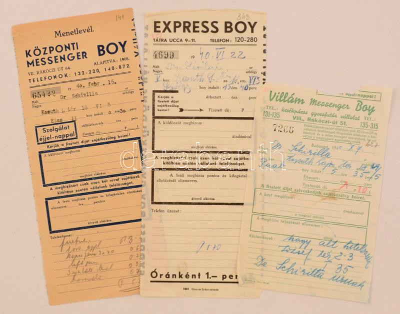cca 1940 3 db. kitöltött gyorsfutár menetlevél. https://www.darabanth.com/de/277-Fernauktion/277.0/Andere-Sammelgebiete/Drucksachen~28/cca-1940-3-db-kitoltott-gyorsfutar-menetlevel~II1397768