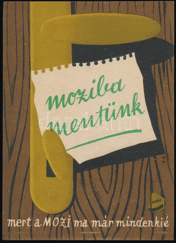 cca 1950 Moziba mentünk kisplakát. 15x22 cm https://www.darabanth.com/de/277-Fernauktion/277.0/Andere-Sammelgebiete/Drucksachen~28/cca-1950-Moziba-mentunk-kisplakat-15x22-cm~II1425427