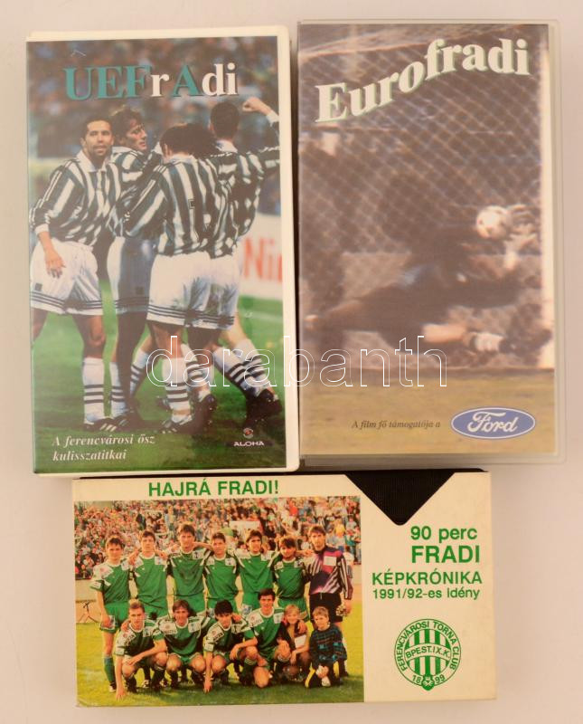 3 db videokazetta a Fradi focicsapatáról (Eurofradi, UEFrAdi, Fradi ké... https://www.darabanth.com/de/277-Fernauktion/277.0/Andere-Sammelgebiete/Flohmarkt~35/3-db-videokazetta-a-Fradi-focicsapatarol-Eurofradi-UEFrAdi-Fradi-kepkronika-199192-kozte-~II1424483