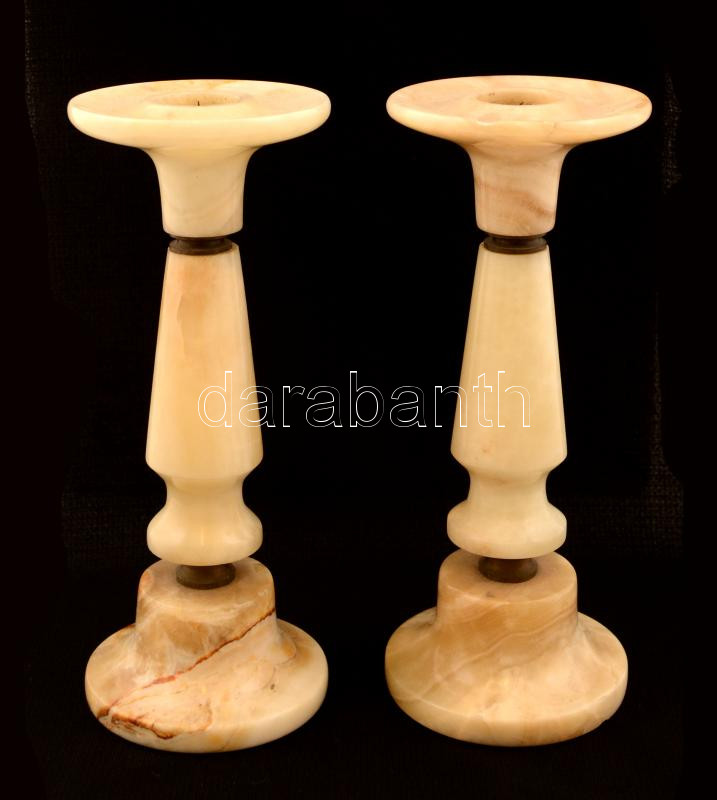 Beschreibung: Alabástrom gyertyatartó párban (2db), egyik ragasztott, m:20 cm