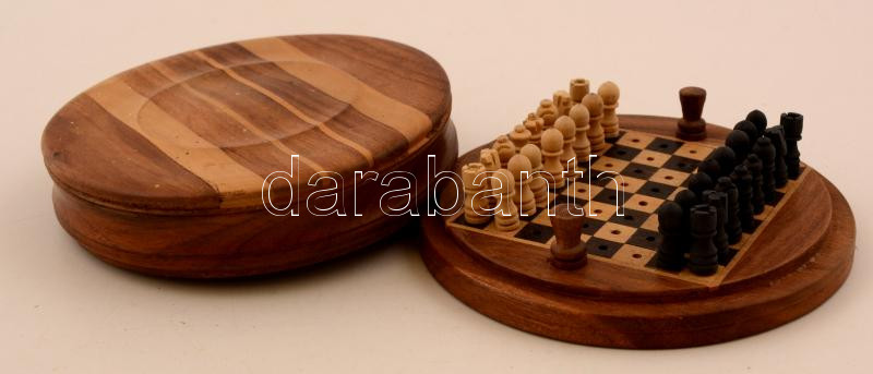 Beschreibung: Fából faragott mini sakk készlet, d: 12 cm