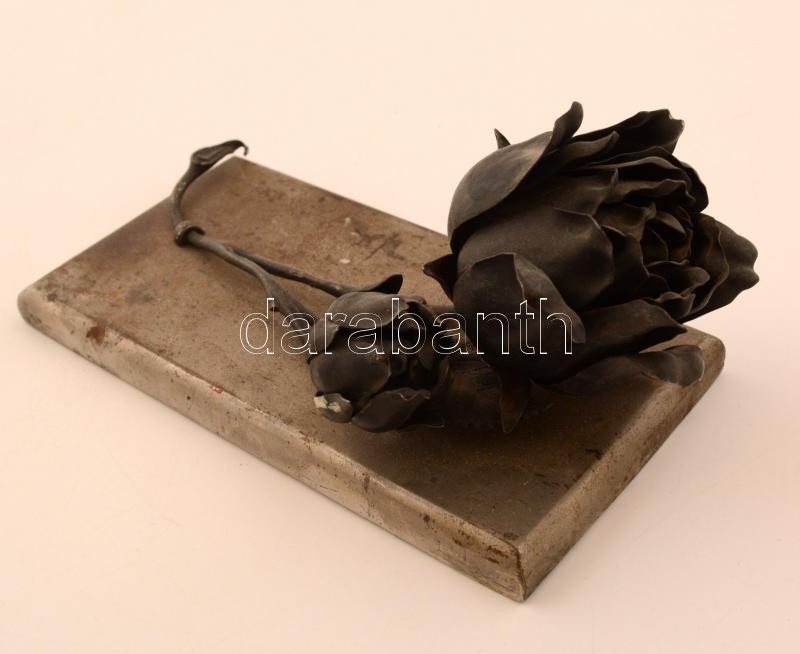 Fém rózsaág, fém talapzaton, 16x8x6 cm https://www.darabanth.com/de/277-Fernauktion/277.0/Andere-Sammelgebiete/Flohmarkt~35/Fem-rozsaag-fem-talapzaton-16x8x6-cm~II1424593