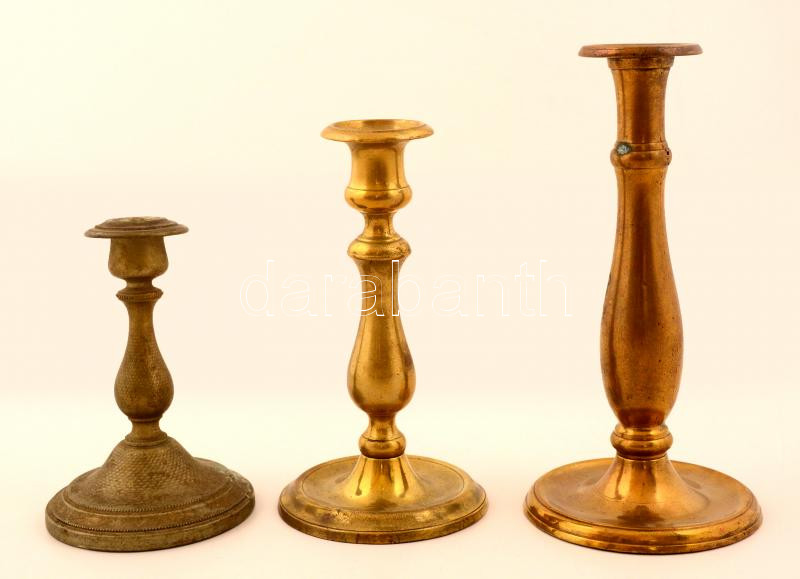 Gyertyatartók, 3 db, réz, alpakka, kisebb sérülésekkel, patinával, m: ... https://www.darabanth.com/de/277-Fernauktion/277.0/Andere-Sammelgebiete/Flohmarkt~35/Gyertyatartok-3-db-rez-alpakka-kisebb-serulesekkel-patinaval-m-15-cm-m-18-cm-m-22~II1418568