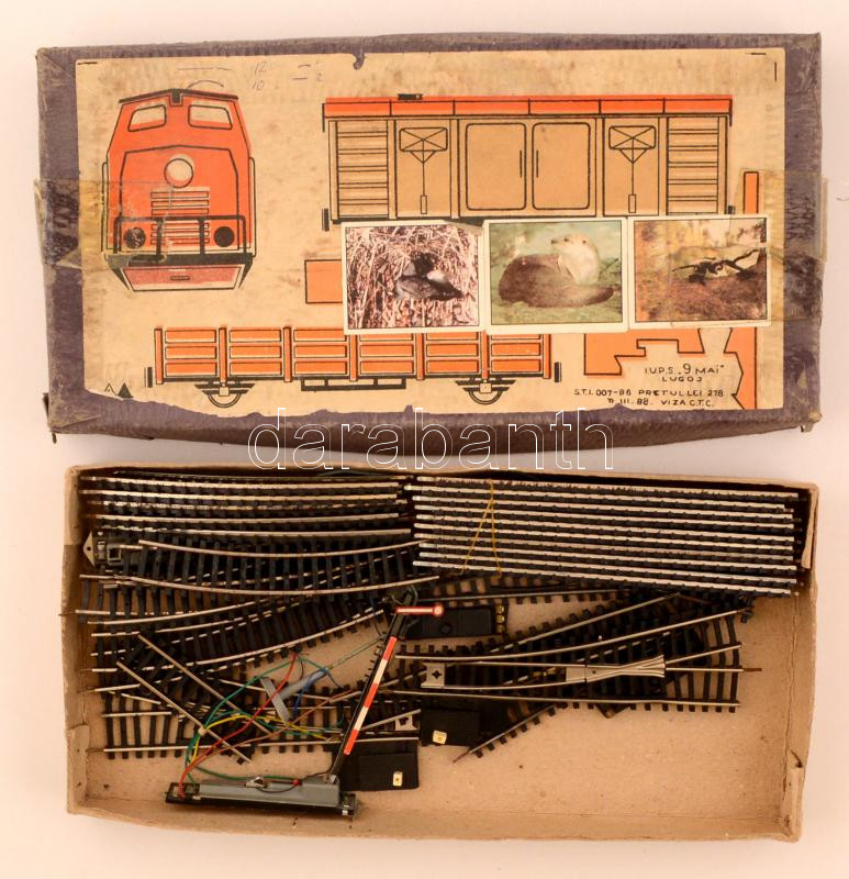 Modellvasúthoz való sínek, váltók és jelzőlámpa eredeti dobozában https://www.darabanth.com/de/277-Fernauktion/277.0/Andere-Sammelgebiete/Flohmarkt~35/Modellvasuthoz-valo-sinek-valtok-es-jelzolampa-eredeti-dobozaban~II1424403