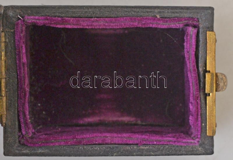 Beschreibung: Régi ékszertartó dobozka, bársony béléssel, kopásnyomokkal, 6x5,5x4,5 cm