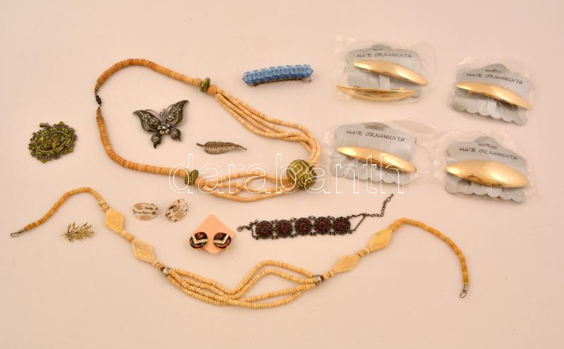 Beschreibung: Vegyes bizsu tétel: nyakláncok, hajcsatok, stb., dobozban
