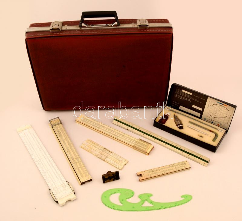 Vegyes logarléc, vonalzó és irodaszer tétel, bőr aktatáskában https://www.darabanth.com/de/277-Fernauktion/277.0/Andere-Sammelgebiete/Flohmarkt~35/Vegyes-logarlec-vonalzo-es-irodaszer-tetel-bor-aktataskaban~II1417815