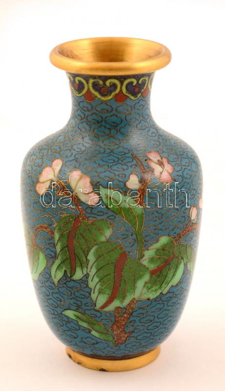 Beschreibung: Virágmintás kis váza, zománc-réz, jó állapotban, m:10 cm
