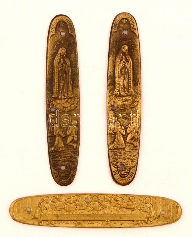 Beschreibung: cca 1930 3 db vallásos tematikájú rézveret, botjelvény, (bicska dísz?) 7 cm