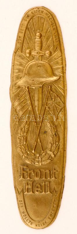 Beschreibung: cca 1930 Náci tematikájú rézveret, botjelvény, (bicska dísz?) 7 cm / Front Heil Nazi copper ornament (knife ornament?)