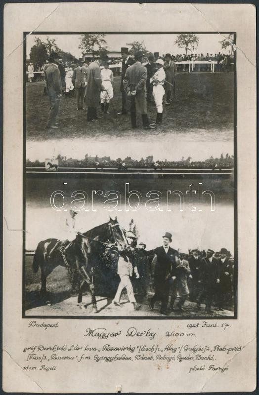 1928 Bp., Magyar Derby, Gróf Berchtold úr lova Tiszavirág, fotólap, fe... https://www.darabanth.com/de/277-Fernauktion/277.0/Andere-Sammelgebiete/Foto~19/1928-Bp-Magyar-Derby-Grof-Berchtold-ur-lova-Tiszavirag-fotolap-feluleten-tuoesnyomokka~II1421411
