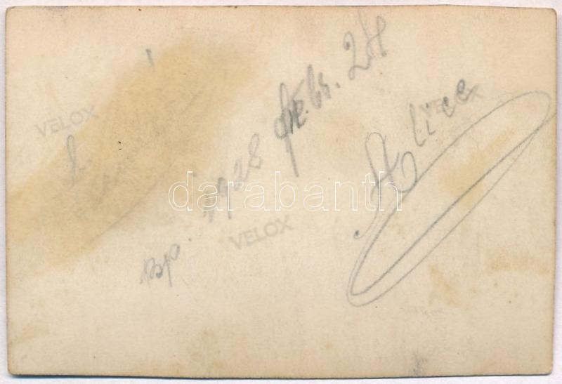 Beschreibung: 1928 Nő motoron, a hátoldalán dátumozva 5,5 x 8,5 cm.