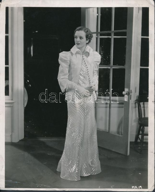 Beschreibung: 1934 Mary Astor (1906-1987) amerikai színésznő, sajtófotó, hátoldalán feliratozva, sarkai megtörve, 24×20 cm