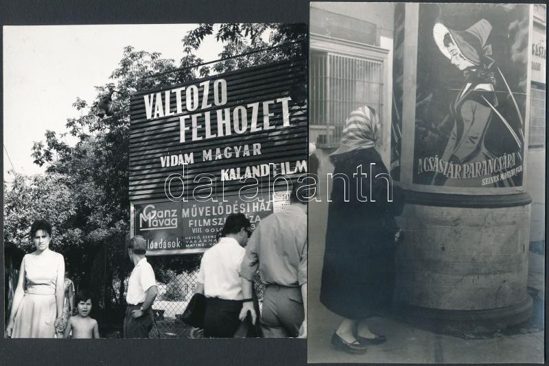 Beschreibung: 1956, 1967 Mozifilmek plakátjait és kiírásait bemutató fotók(A császár parancsára, Változó felhőzet), 2 db fotó, 13x9 és 12x11 cm