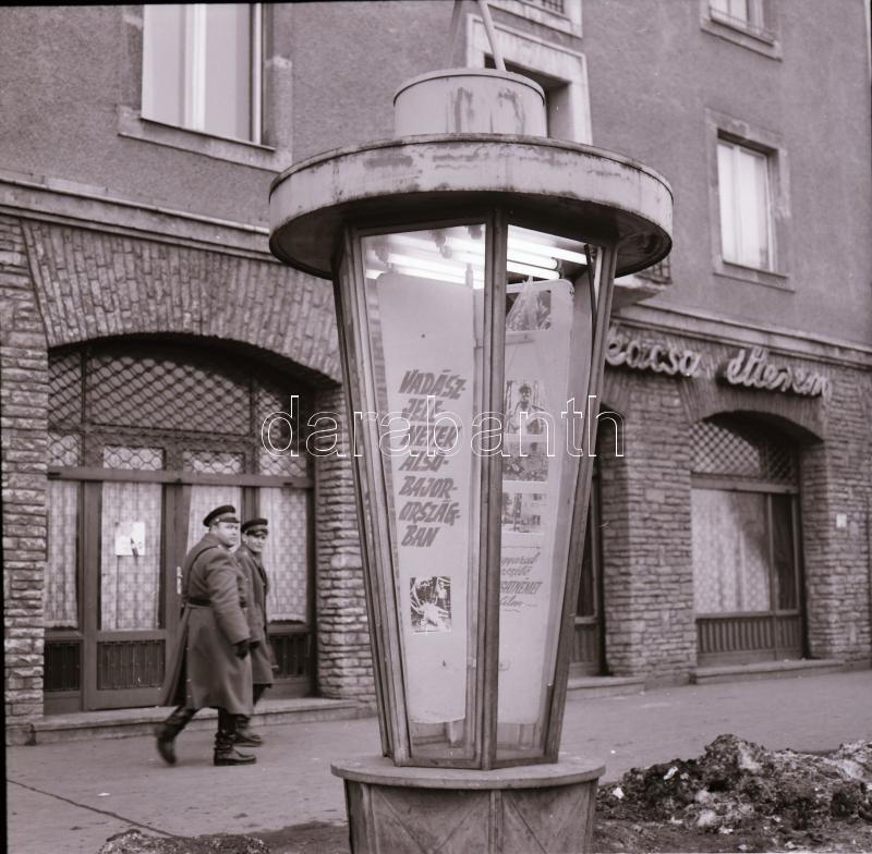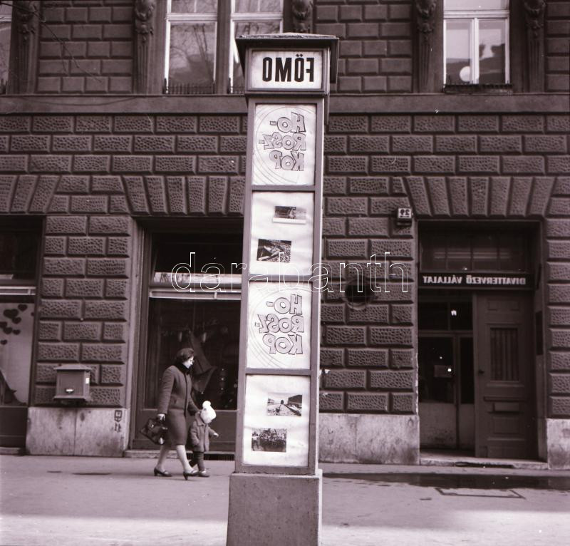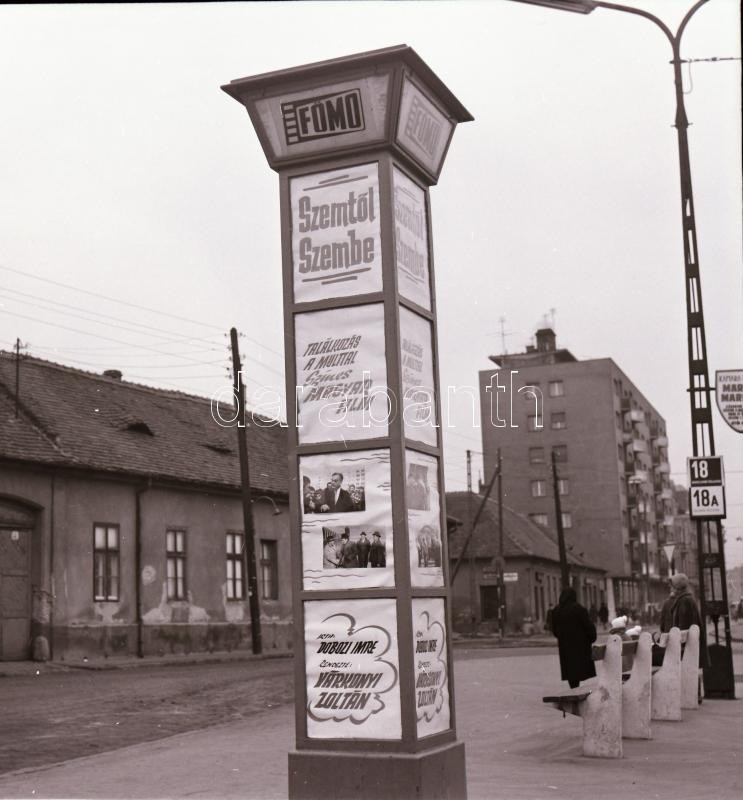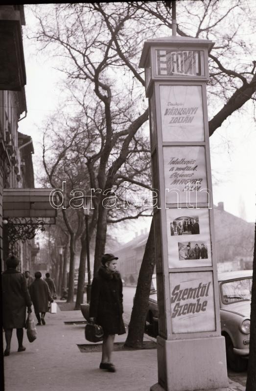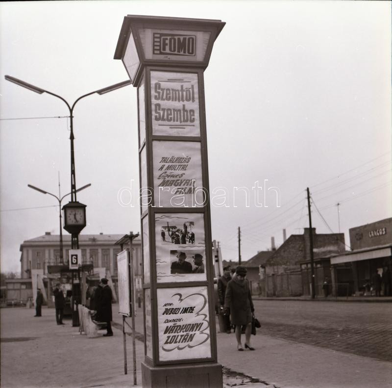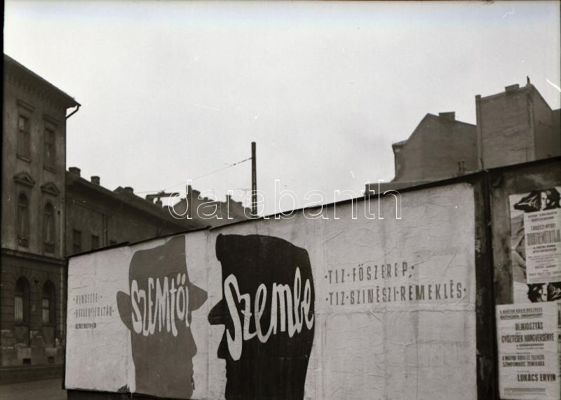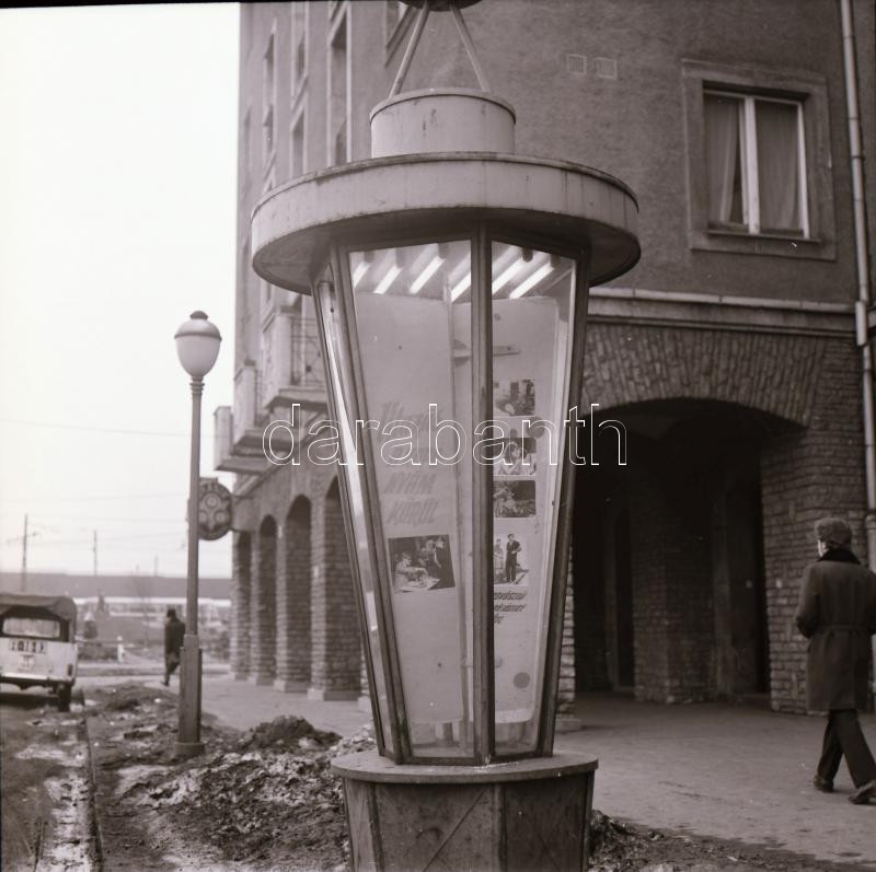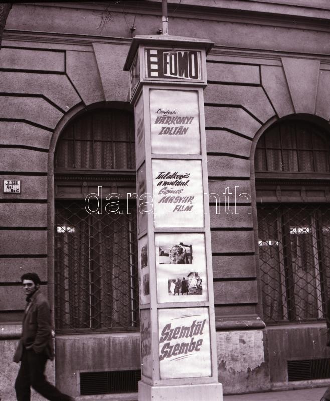 1970 Budapest, a Fővárosi Moziüzemi Vállalat hirdető oszlopai, plakáthelyei, kirakatai, ahol az új filmeket hirdették, 13 db szabadon felhasználható negatív, 6x6 cm