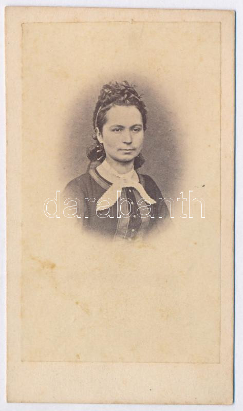 cca 1870 Ismeretlen nő portréja, keményhátú fotó, 11x6 cm. https://www.darabanth.com/de/277-Fernauktion/277.0/Andere-Sammelgebiete/Foto~19/cca-1870-Ismeretlen-no-portreja-kemenyhatu-foto-11x6-cm~II1398679