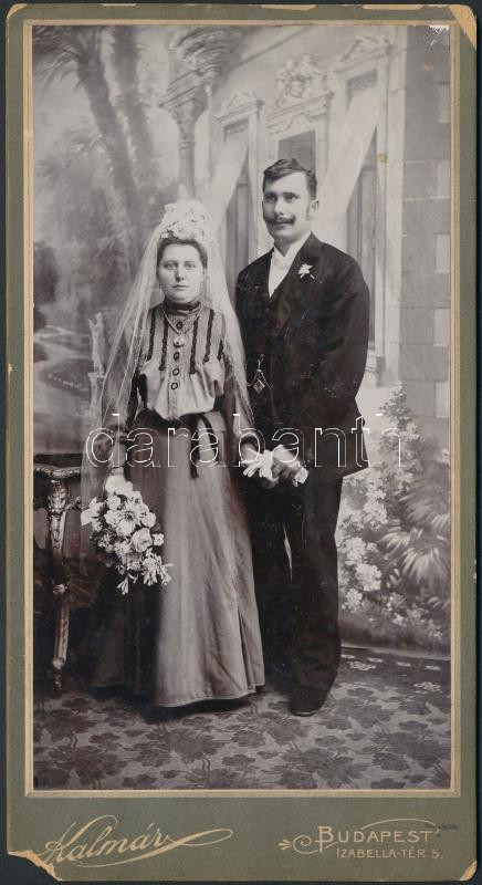 cca 1900 Esküvő, keményhátú fotó Kalmár budapesti műterméből, sérült s... https://www.darabanth.com/de/277-Fernauktion/277.0/Andere-Sammelgebiete/Foto~19/cca-1900-Eskuvo-kemenyhatu-foto-Kalmar-budapesti-mutermebol-serult-sarok-20x11cm~II1416965