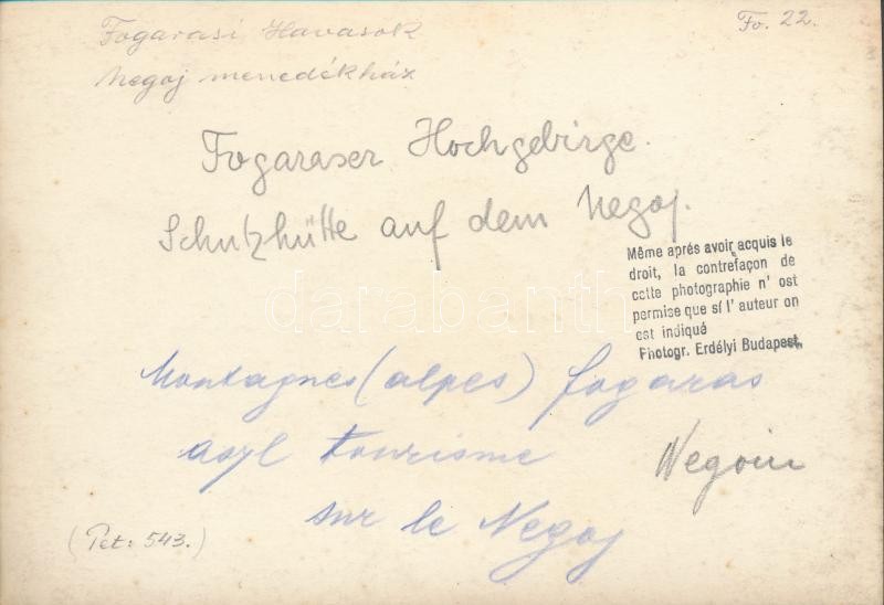 cca 1910-1920 Negoj menedékház, Fogarasi-havasok, hátoldalon feliratoz... https://www.darabanth.com/de/277-Fernauktion/277.0/Andere-Sammelgebiete/Foto~19/cca-1910-1920-Negoj-menedekhaz-Fogarasi-havasok-hatoldalon-feliratozva-11x15-cm-Cabana-Negoi~II1399167