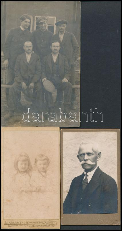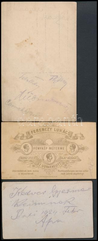 cca 1910-1924 Portrék, 3 db fénykép, köztük 2 db keményhátú fotó pásztói illetve székelyudvarhelyi műteremből, hátuljukon feliratozva, különböző méretben