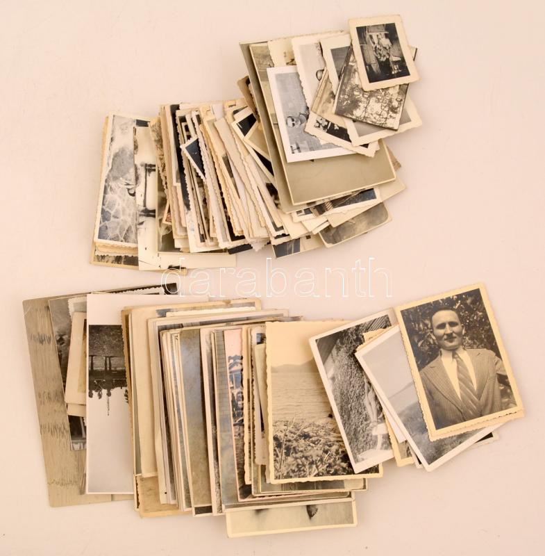 cca 1910-1980 Vegyes régi fotó tétel, kb. 170 db., férfiakat ábrázoló fotók, sporteseményen, sportolás, nyaralás közben, baráti társasággal, valamint a seregben, egy-két műtermi, valamint portréfotóval, némelyik hátoldalán bejegyzésekkel, ajándékozási sorokkal, 9x14 cm és 5x4 cm között méretben.