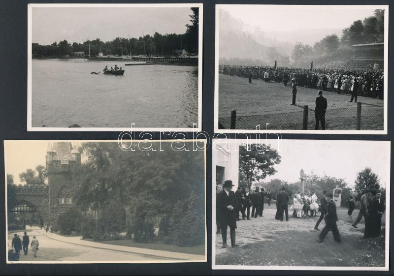 cca 1935-1940 Vegyes fotó tétel: női atléták, lovas huszárok, hídépítés, hajó, ünnepség, vasútállomás, stb., 16 db fotó, 5x6 és 12x18 cm közötti méretekben