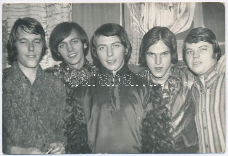 Beschreibung: cca 1965-1967 Metro Együttes,(Brunner Győző, Sztevanovity Dusán, Sztevanovity Zorán, Frenreisz Károly, Schöck Ottó), 9x6 cm.