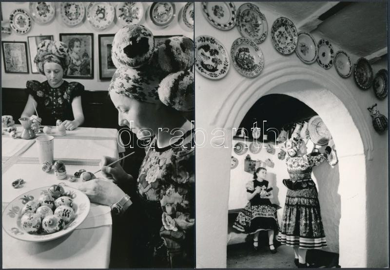 Beschreibung: cca 1970 Mezőkövesdi matyó népviselet, 2 db MTI fotó, 13x18 cm