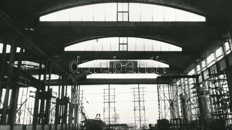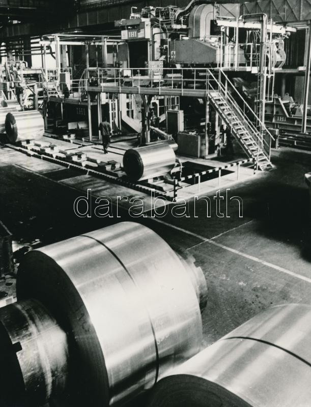 cca 1976 Székesfehérvár, a Könnyűfémmű új hengerműcsarnoka és az üzembe állított új hengersora, amelyen alumínium szalagot gyártanak (1982), 2 db vintage fotó, 16x23,5 cm és 22,5x17,5 cm