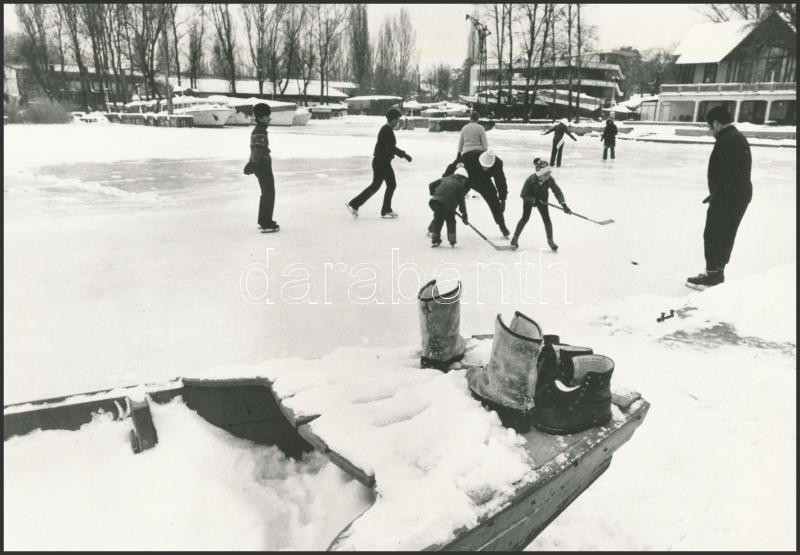 Beschreibung: cca 1977 Balatonfüred, Téli játékok a befagyott Balatonon, vintage fotó, 16,5x23,5 cm