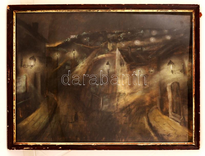 Beschreibung: Sztankó Gyula (1903-1943): Tabáni este. Pasztell, papír, jelzett, üvegezett keretben, 49×68 cm
