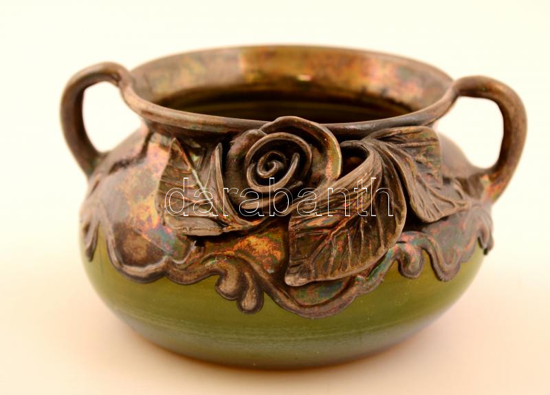 Beschreibung: Muranói fém rátétes üveg bonbonier, d: 9 cm, m: 6,5 cm