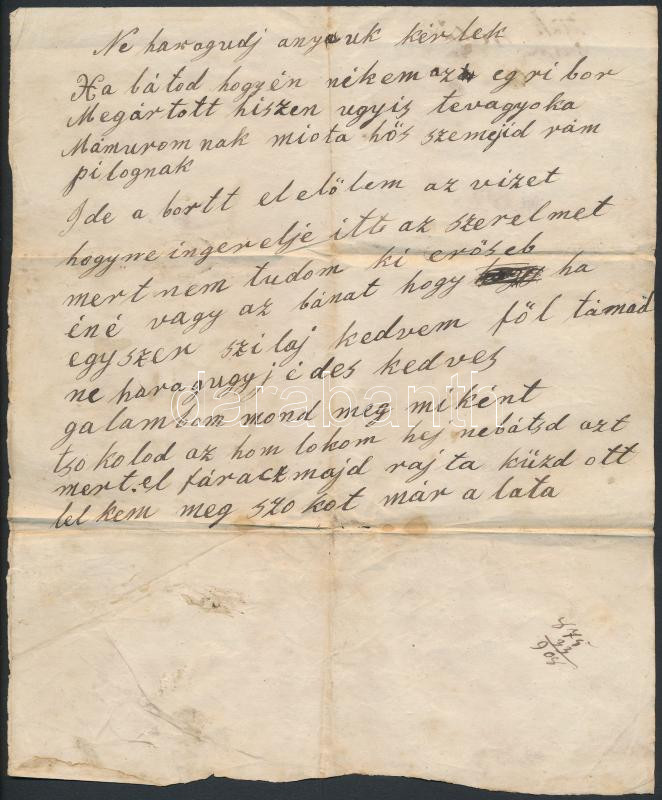 cca 1860-1880 Egy borkereskedő bűnbánó verses levele feleségéhez https://www.darabanth.com/de/277-Fernauktion/277.0/Andere-Sammelgebiete/Historische-Dokumenten-Handschriften~17/cca-1860-1880-Egy-borkereskedo-bunbano-verses-levele-felesegehez~II1420003